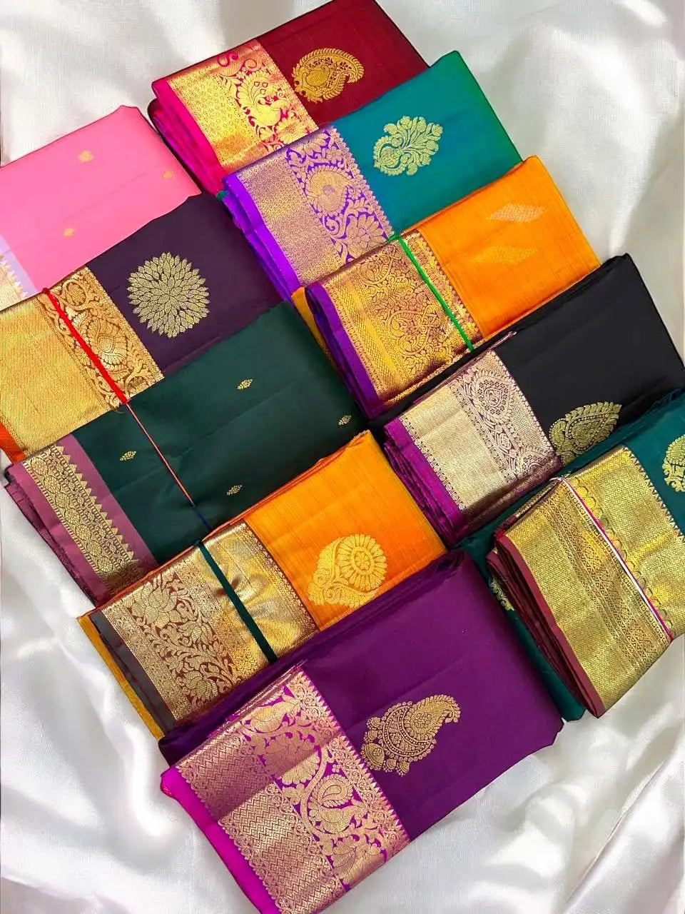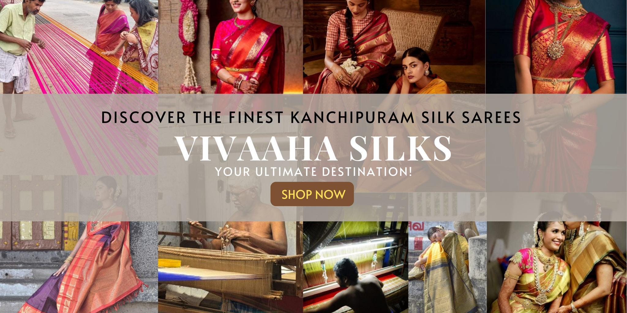 AAt Vivaaha Silks, located in the heart of Kanchipuram, we pride ourselves on being the silk saree specialists, offering a meticulously curated selection of handloom sarees from across India. Our store is dedicated to preserving the rich heritage of Kanchipuram silk weaving while delivering the finest Traditional Kancheevaram Pattu, Exclusive Bridal Kanchipuram Silk, Soft Silk, Pattu Vesti/Dhoti, Kanchi Silk Cotton, Kanchi Cotton Sarees to our discerning customers.
